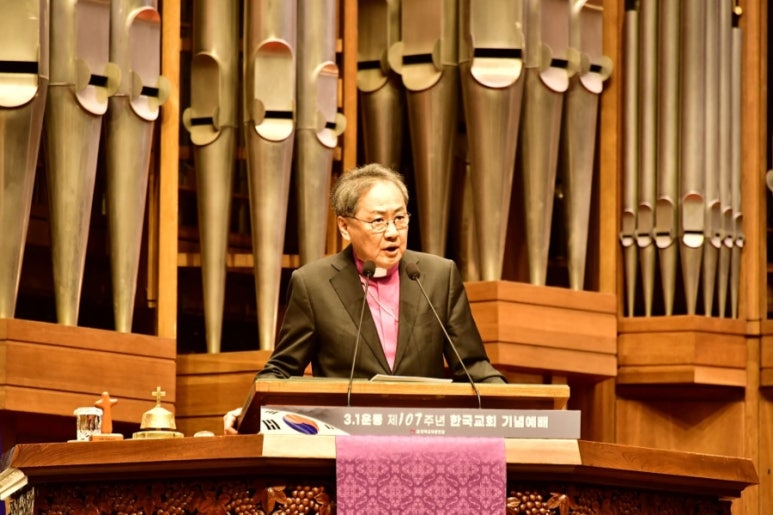 대표회장 김정석 감독은 ‘삼일운동과 기독교’라는 제목의 말씀을 통해 “3.1운동은 단순한 독립운동을 넘어 하나님 나라의 자유와 평등사상에 기초한 거룩한 신앙 운동이었다”라고 했다. 특히 김 감독은 독립운동의 산실이었던 기독교 사학의 역할을 높이 평가하며, “복음의 진리를 가르친 기독교 사학이 있었기에 우리 선조들은 인간의 존엄성을 깨닫고 일본 제국주의의 총칼 앞에서도 담대히 나라의 자주와 독립을 외칠 수 있었다”고 강조했다. 그러면서 “인간을 변화시키는 것은 총칼이 아닌 하나님의 절대적인 사랑”이라며, “진리 안에서 얻은 자유와 평화의 가치를 소중히 지켜 다음 세대에게 신앙의 유산으로 물려주자”고 전했다.