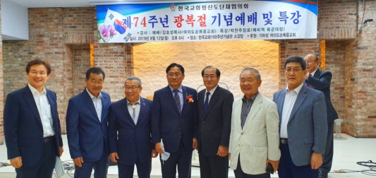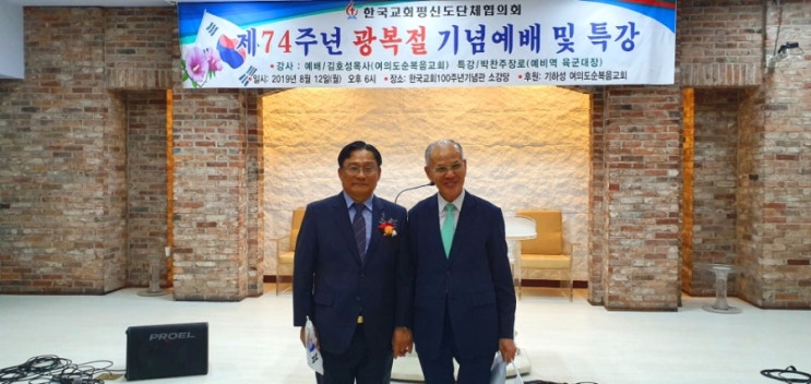 [제74주년광복절기념예배및특강] 설교:김호성목사 (여의도순복음교회목회신학담당부목사) 특강:박찬주장로 예비역육군대장 일시.2019년08월12일(월)오후6시 장소:한국교회100주년기념관 소강당 (한국교회평신도단체협의회) !역사를잊은 민족에게 미래는없다.?